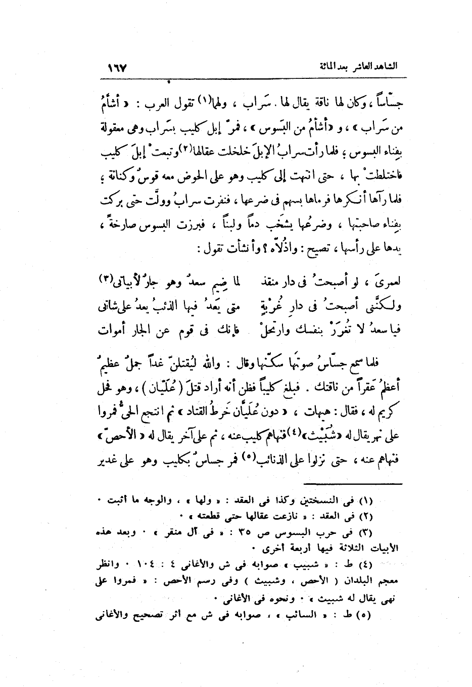جساساً وَكَانَ لَهَا نَاقَة يُقَال لَهَا: سراب وَلَهُمَا تَقول الْعَرَب:)
