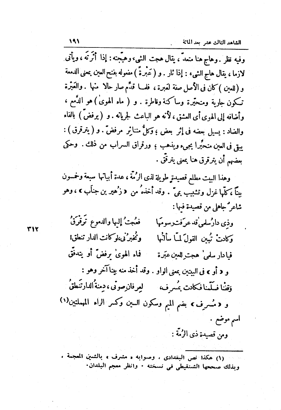 (وقفنا فسلمنا فَكَادَتْ بمسرفٍ ... لعرفان صوتي دمنة الدَّار تنطق)