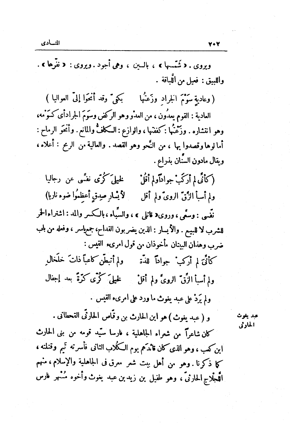 وَلم يرد على عبد يَغُوث مَا ورد على امْرِئ الْقَيْس. وعبد يَغُوث هُوَ ابْن الْحَارِث بن وَقاص الْحَارِثِيّ القحطاني.