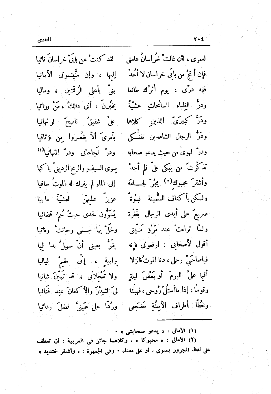 (لعمري لَئِن غالت خُرَاسَان هامتي ... لقد كنت عَن بَابي خُرَاسَان نَائِيا)