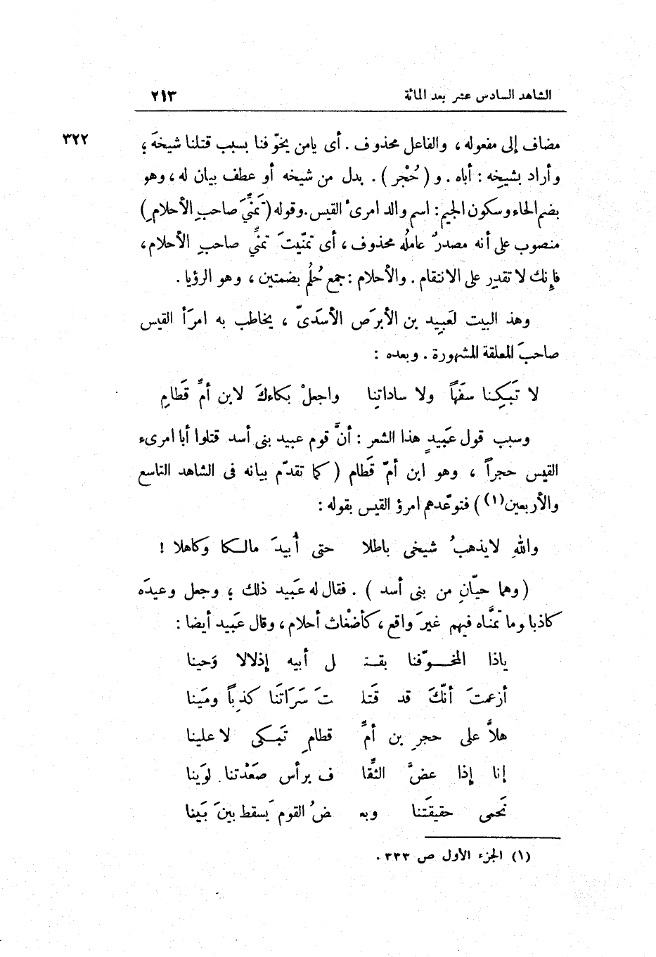 (هلا على حجر بن أم ... قطام تبْكي لَا علينا)
