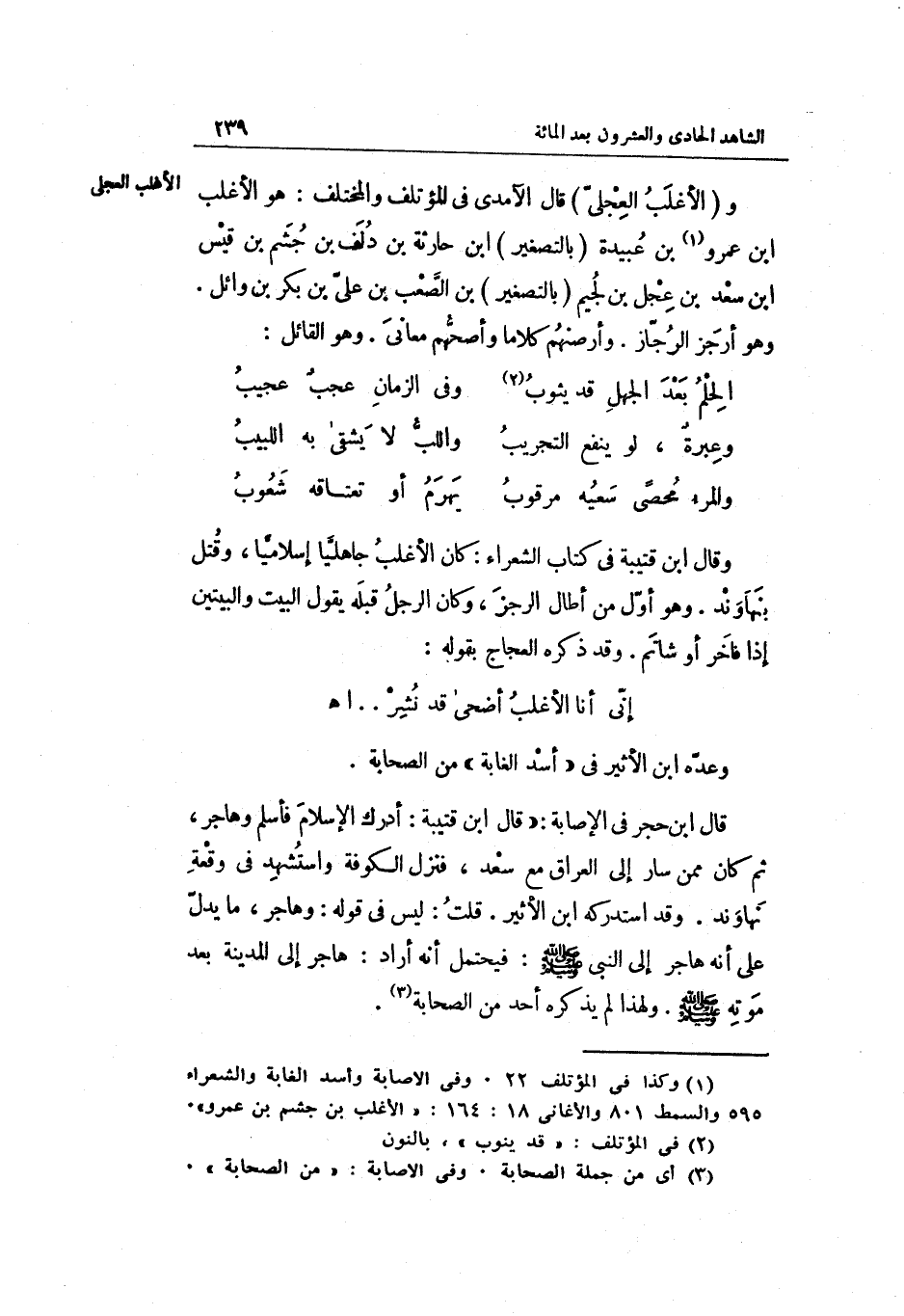والْأَغْلَب الْعجلِيّ قَالَ الْآمِدِيّ فِي المؤتلف والمختلف: هُوَ الْأَغْلَب
