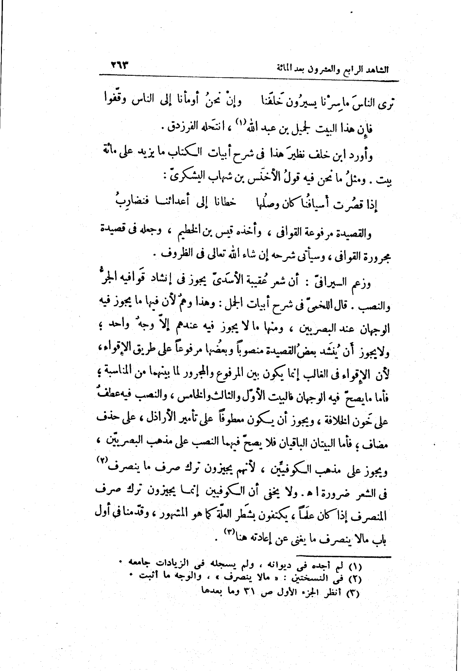 وَأورد ابْن خلف نَظِير هَذَا فِي شرح أَبْيَات الْكتاب مَا يزِيد على مائَة بَيت. وَمثل مَا نَحن فِيهِ قَول الْأَخْنَس بن شهَاب الْيَشْكُرِي: