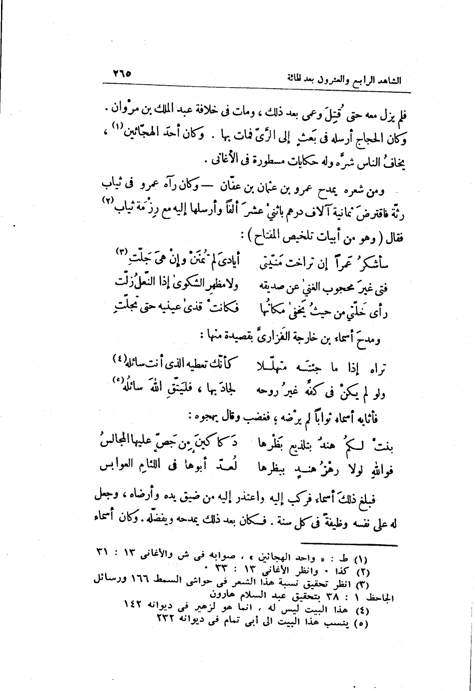 وَمن شعره يمدح عَمْرو بن عُثْمَان بن عَفَّان وَكَانَ رَآهُ عَمْرو فِي ثِيَاب رثَّة فاقترض ثَمَانِيَة آلَاف دِرْهَم بِاثْنَيْ عشر ألفا وأرسلها إِلَيْهِ مَعَ رزمة ثِيَاب فَقَالَ: وَهُوَ من أَبْيَات تَلْخِيص الْمِفْتَاح: