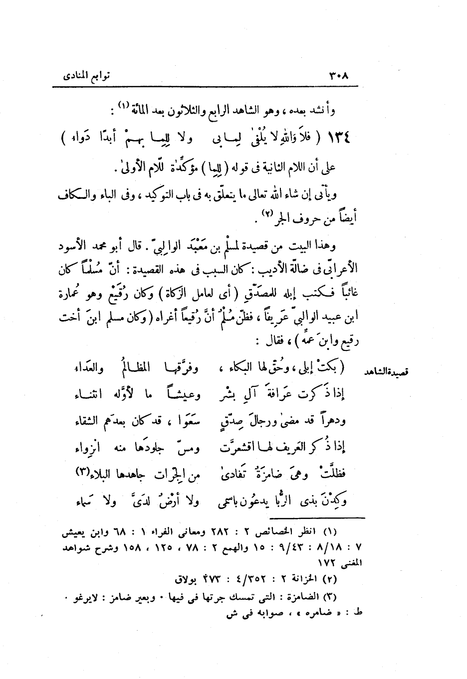 (بَكت إبلي وَحقّ لَهَا الْبكاء ... وفرقها الْمَظَالِم والعداء)