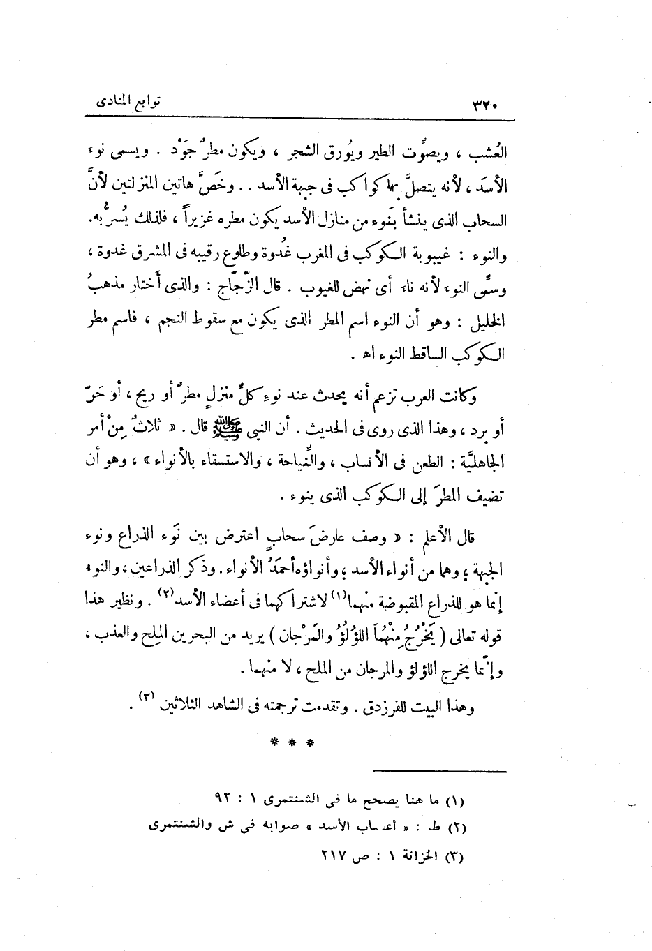 وَكَانَت الْعَرَب تزْعم أَنه يحدث عِنْد نوء كل منزل مطرٌ أَو ريح أَو حر أَو برد وَهَذَا الَّذِي)