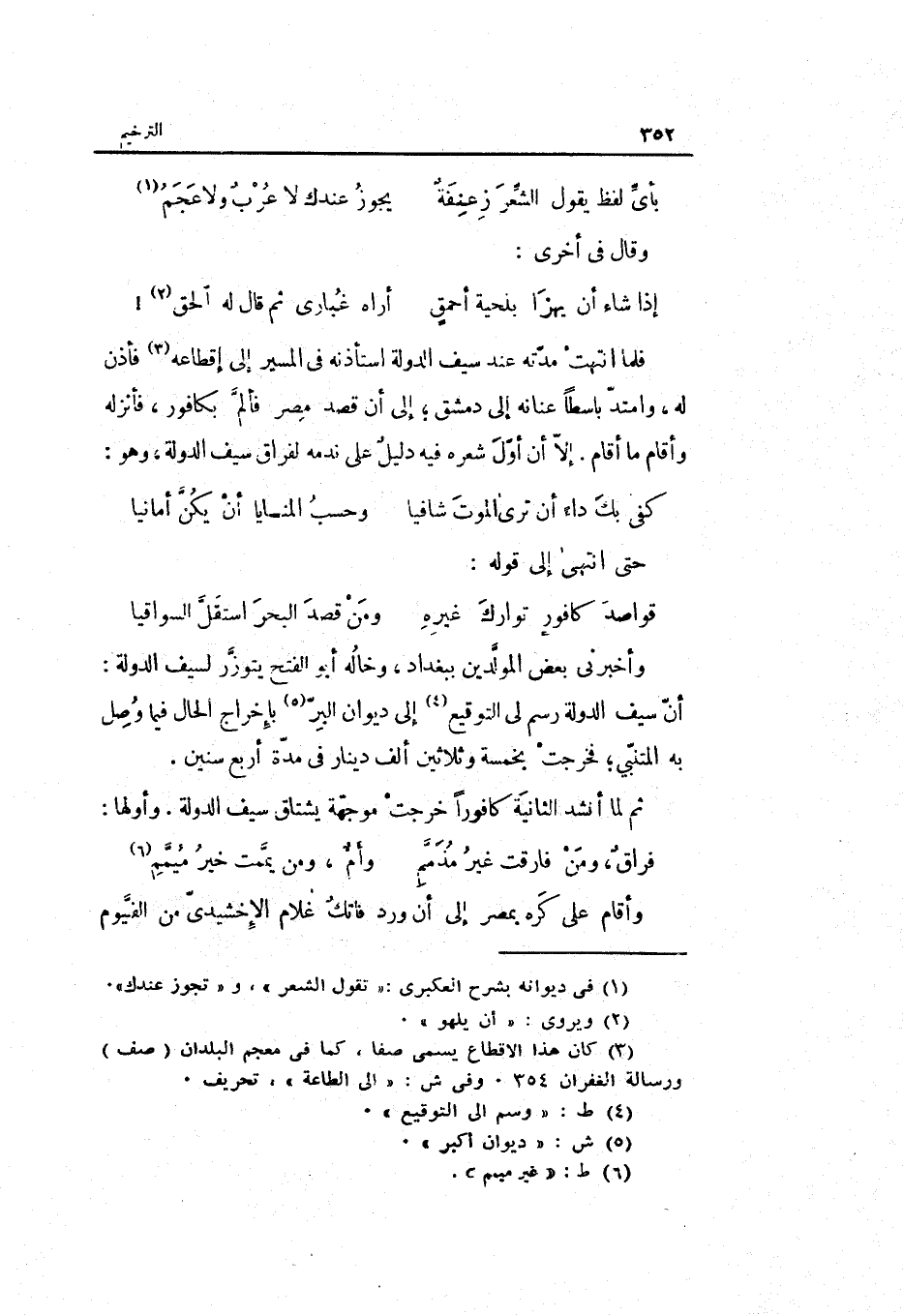حَتَّى انْتهى إِلَى قَوْله: وَأَخْبرنِي بعض المولدين بِبَغْدَاد وخاله أَبُو الْفَتْح يتوزر لسيف الدولة: أَن سيف الدولة رسم لي التوقيع إِلَى ديوَان الْبر بِإِخْرَاج الْحَال فِيمَا وصل بِهِ المتنبي فَخرجت بِخَمْسَة وَثَلَاثِينَ ألف دِينَار فِي مُدَّة أَربع سِنِين.