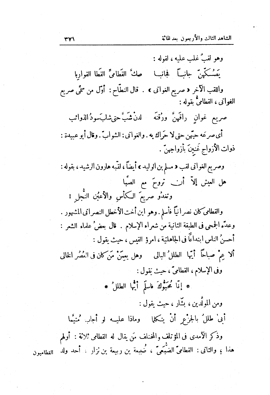 وصريع الغواني لقب مُسلم بن الْوَلِيد أَيْضا لقبه هَارُون الرشيد بقوله: