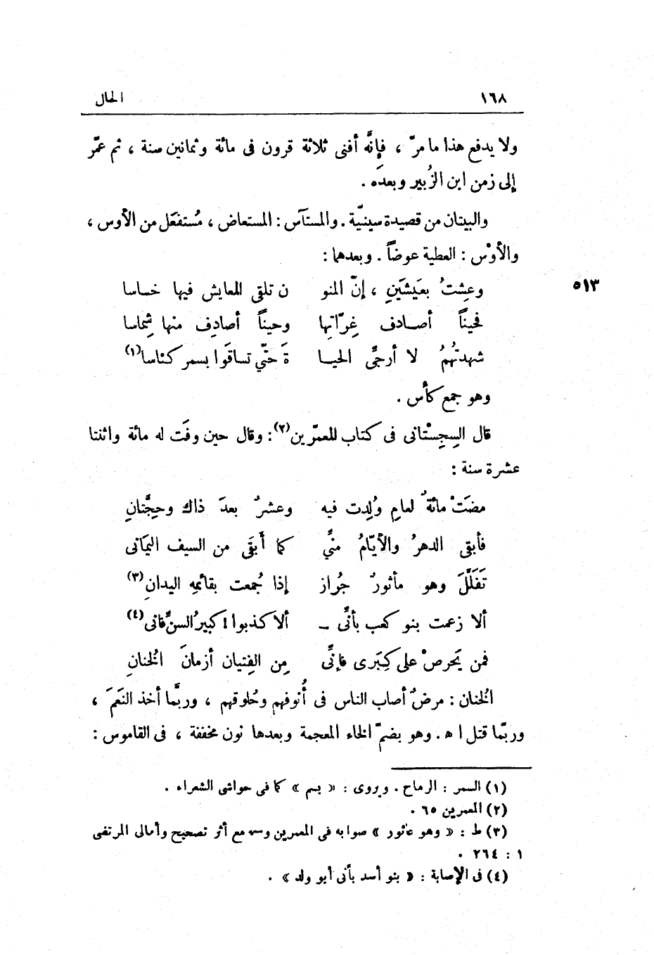 قَالَ السجسْتانِي فِي كتاب المعمرين: وَقَالَ حِين وفت لَهُ مائَة واثنتا عشرَة سنة: