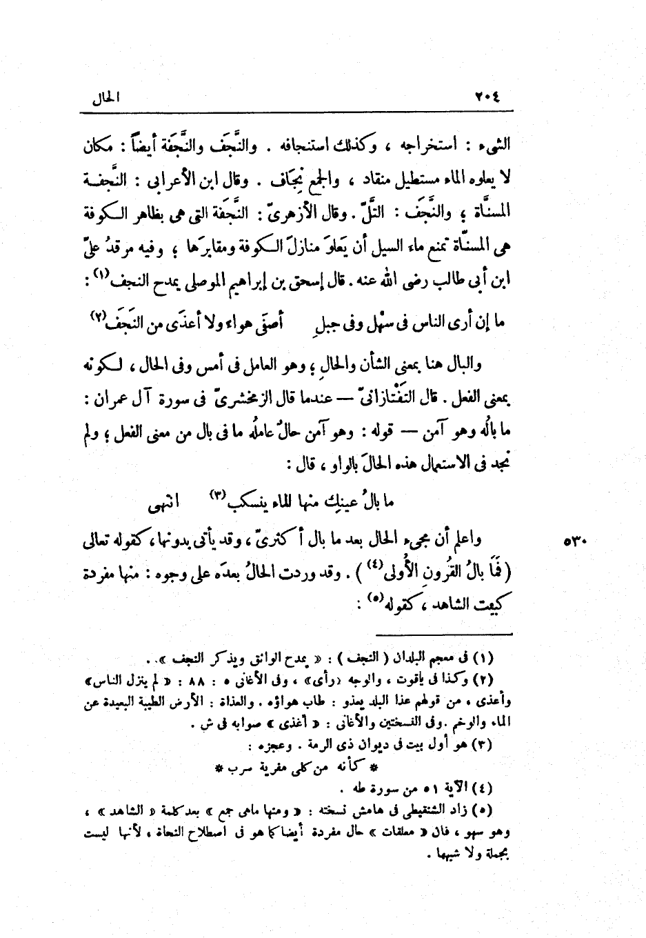 وَقَالَ ابْن الْأَعرَابِي: النجفة المسنّاة والنجف: التل. وَقَالَ الْأَزْهَرِي: النجفة الَّتِي هِيَ بِظَاهِر)
