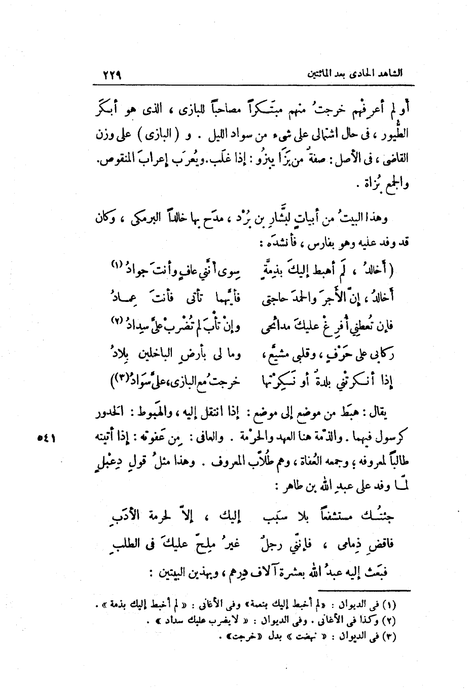 وَهَذَا الْبَيْت من أَبْيَات لبشار بن برد مدح بهَا خَالِدا الْبَرْمَكِي وَكَانَ قد وَفد عَلَيْهِ وَهُوَ بِفَارِس فأنشده:
