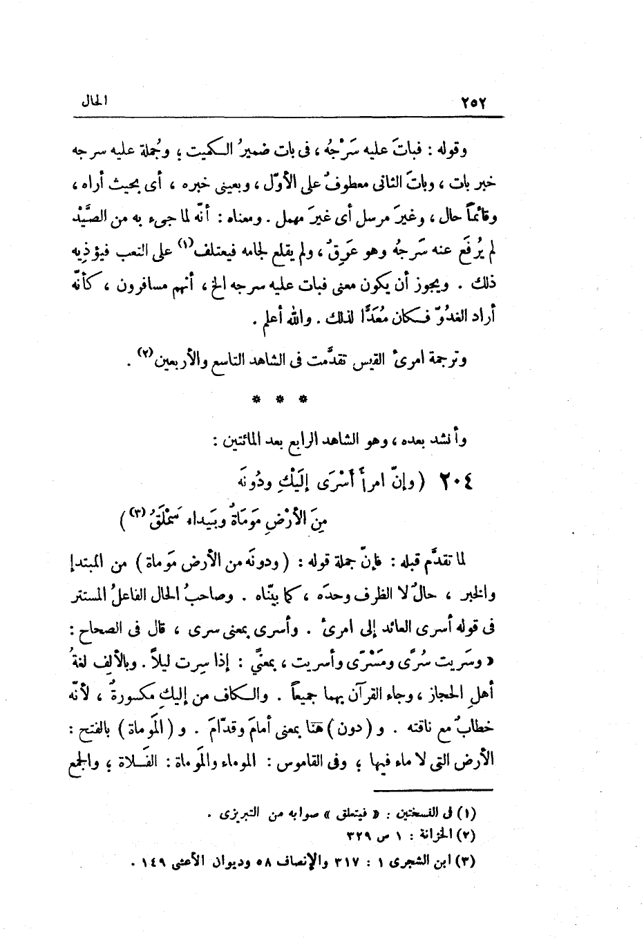 الشَّاهِد الرَّابِع بعد الْمِائَتَيْنِ