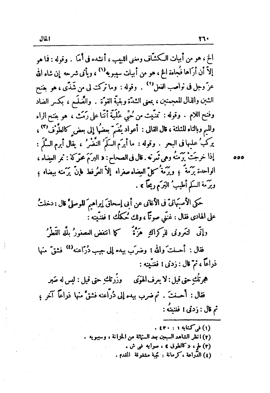 وَقَوله: تمنيت من حبي علية أناا على رمث هُوَ بِفَتْح الرَّاء وَالْمِيم وبالثاء الْمُثَلَّثَة قَالَ القالي: أَعُود يضم بَعْضهَا إِلَى بعض كالطوف يركب عَلَيْهَا فِي الْبَحْر. وَقَوله: مَا أبرم السّلم النَّضر يُقَال: أبرم السّلم: إِذا خرجت برمتِهِ وَهِي ثَمَرَته. قَالَ فِي الصِّحَاح: الْبرم محركة: ثَمَر العضاه الْوَاحِدَة برمة وبرمة كل العضاه صفراء إِلَّا العرفط فَإِن برمتِهِ بَيْضَاء وبرمة السّلم أطيب الْبرم ريحًا.