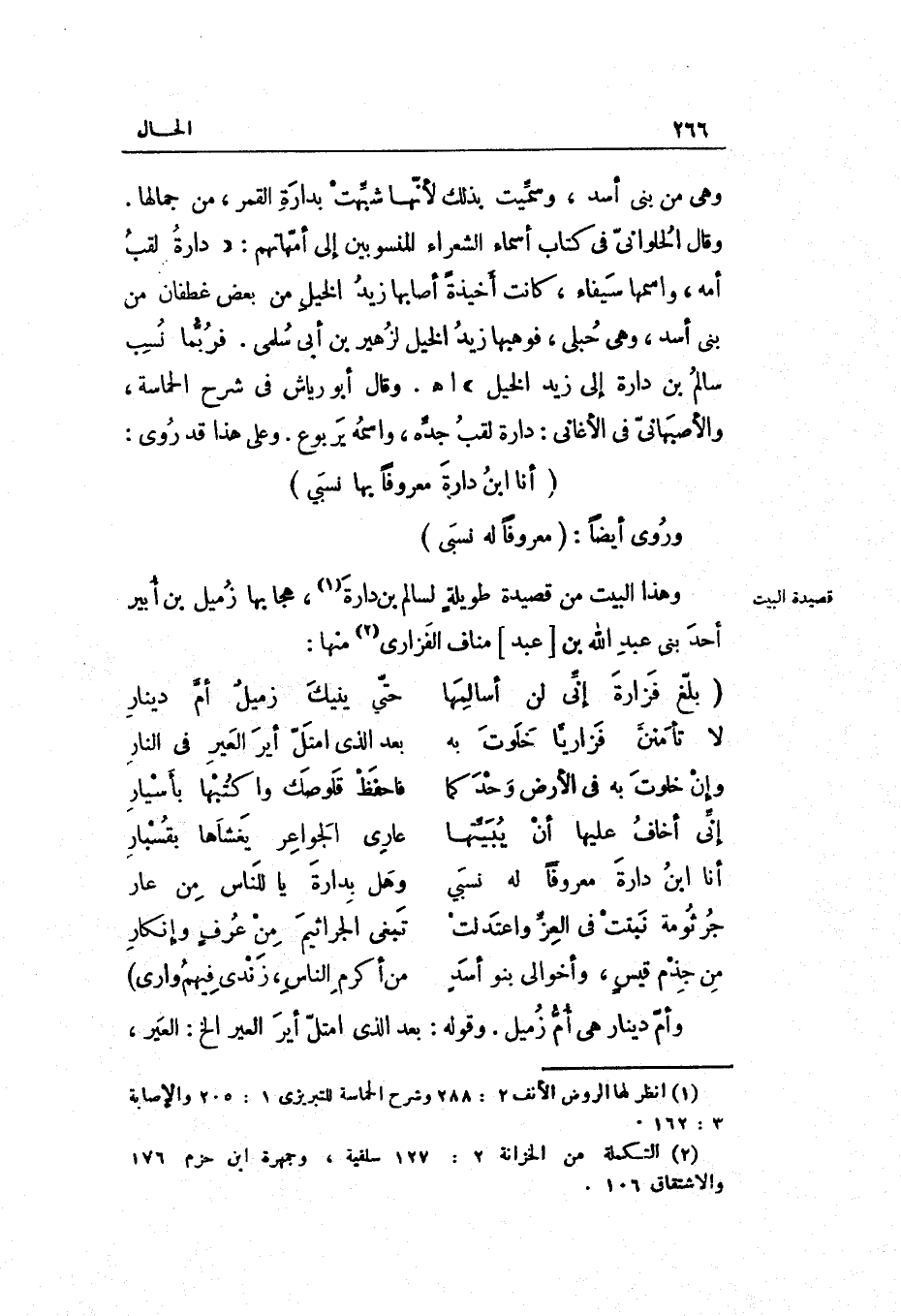 (أَنا ابْن دارة مَعْرُوفا لَهُ نسبي ... وَهل بدارة يَا للنَّاس من عَار)