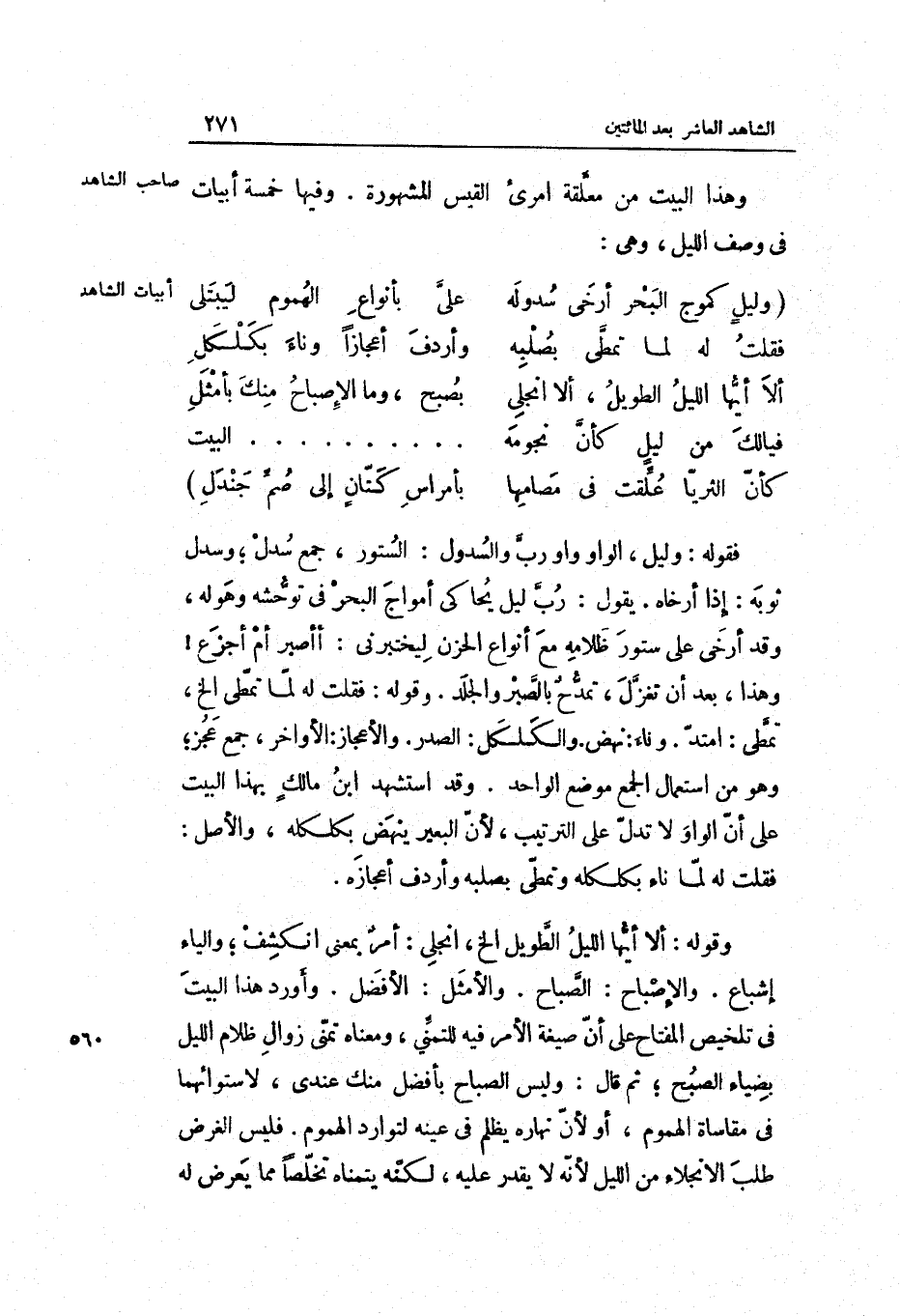 وَهَذَا الْبَيْت من معلّقة امْرِئ الْقَيْس الْمَشْهُورَة. وفيهَا خَمْسَة أَبْيَات فِي وصف اللَّيْل وَهِي: