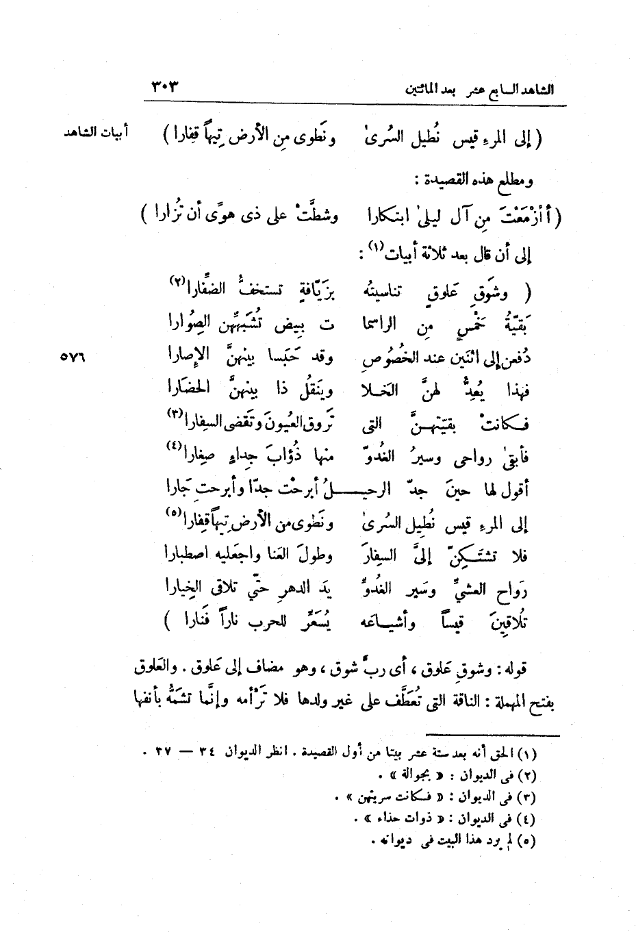 (إِلَى الْمَرْء قيس نطيل السرى ... ونطوي من الأَرْض تيهاً قفارا)