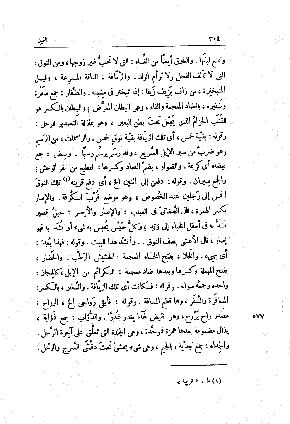 وتمنع لَبنهَا. والعلوق أَيْضا من النِّسَاء: الَّتِي لَا تحب غير زَوجهَا وَمن النوق: الَّتِي لَا تألف الْفَحْل وَلَا ترأم الْوَلَد. والزيافة: النَّاقة المسرعة وَقيل المتبخترة من زاف يزيف زيفاً: إِذا تبختر فِي مشيته. والضفار جمع ضفرة وضفيره بالضاد الْمُعْجَمَة وَالْفَاء وَهِي البطان المعرض والبطان بِالْكَسْرِ هُوَ للقتب الحزام الَّذِي يَجْعَل تَحت بطن الْبَعِير وَهُوَ بِمَنْزِلَة التصدير للرحل.