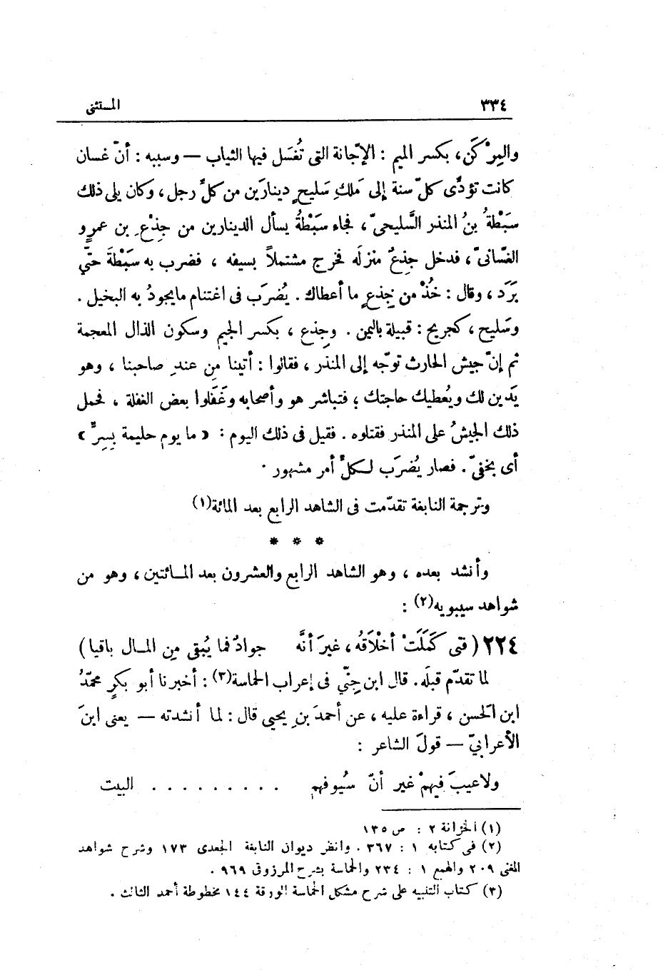 وانشد بعده وَهُوَ الشَّاهِد الرَّابِع وَالْعشْرُونَ بعد الْمِائَتَيْنِ وَهُوَ من شَوَاهِد سِيبَوَيْهٍ: