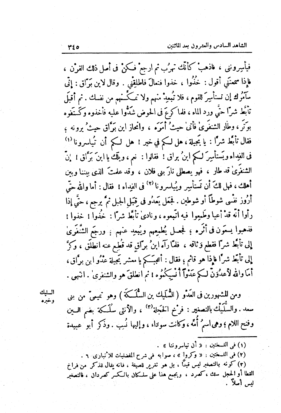 ابْن براق أما وَالله لأعدون لكم عدوا أنسيكموه ثمَّ انْطلق هُوَ والشنفرى. انْتهى.