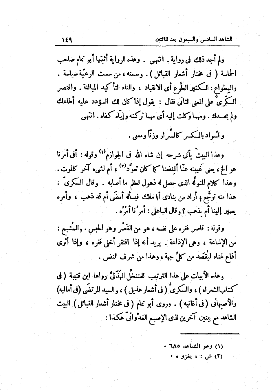فِي أغانيه. وروى أَبُو تّمام فِي مُخْتَار أشعار البائل الْبَيْت الشَّاهِد مَعَ بَيْتَيْنِ آخَرين لذِي الإصبع العدوانيّ هَكَذَا: ...