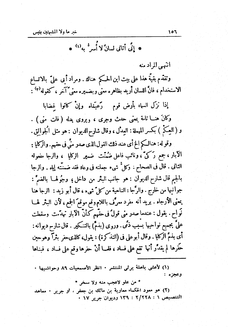 وتقدّم بقيّة هَذَا على بَيت ابْن الحكم هُنَاكَ. وَمُرَاد أبي عليّ بالاتساع الِاسْتِخْدَام فإنّ اللِّسَان)