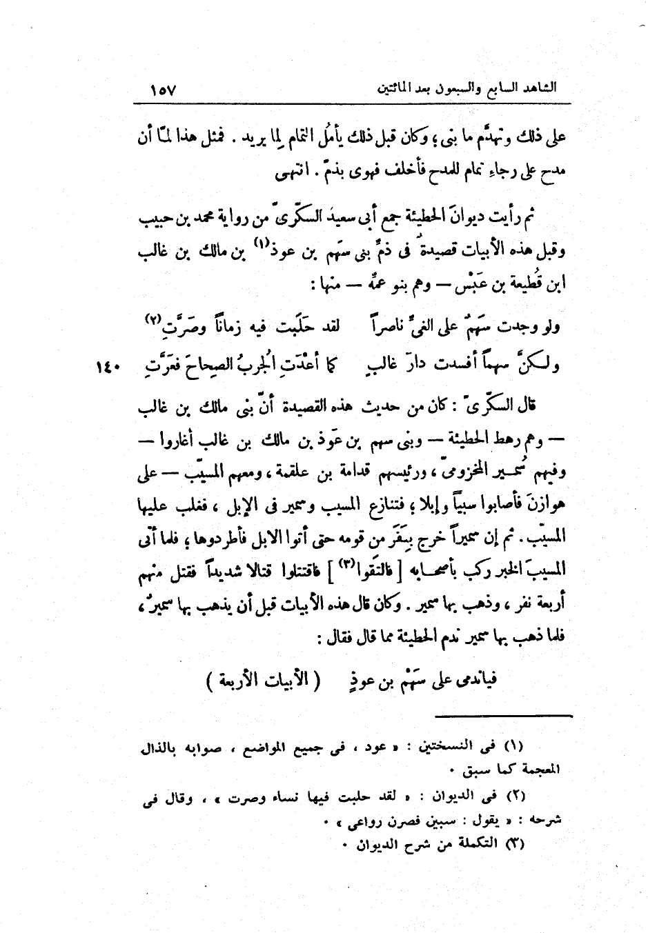 ثمَّ رَأَيْت ديوَان الحطيئة جمع أبي سعيد السكّريّ من رِوَايَة مُحَمَّد بن حبيب وَقبل هَذِه الأبيات قصيدةٌ فِي ذمّ بني سهم بن عوذ بن مَالك بن غَالب بن قطيعة بن عبس وهم بَنو عمّه مِنْهَا: الطَّوِيل