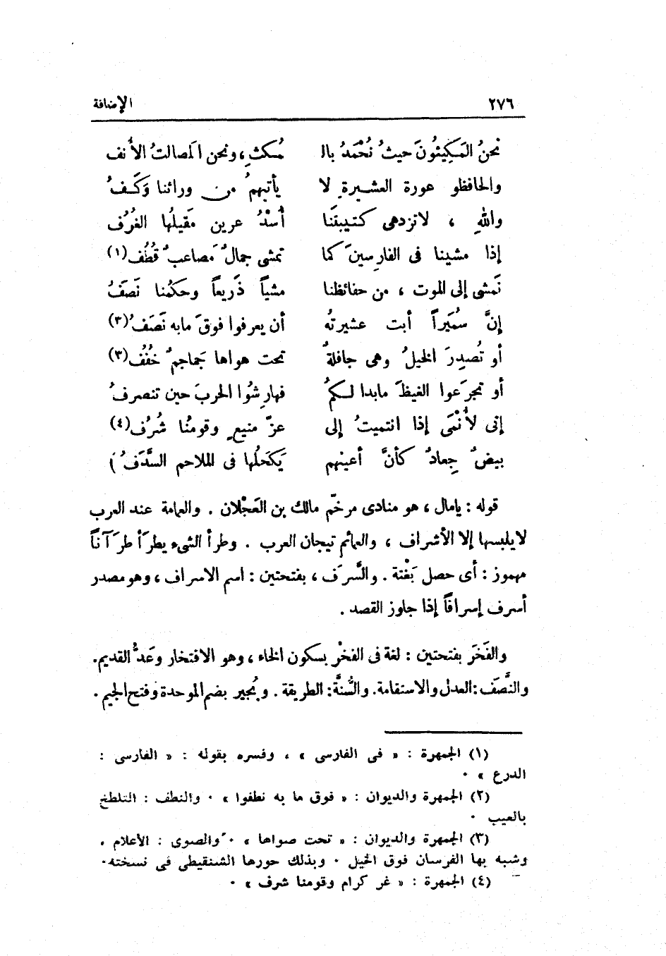 (نمشي إِلَى الْمَوْت من حفائظنا ... مشياً ذريعاً وحكمنا نصف)