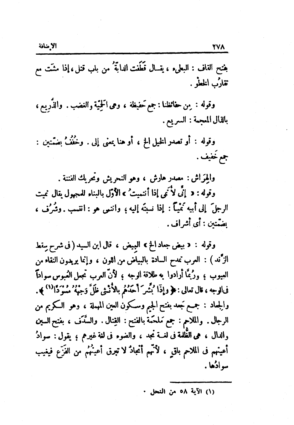 وَقَوله: إنّي لأنمى إِذا انتميت الأوّل بِالْبِنَاءِ للْمَجْهُول يُقَال: نميت الرجل إِلَى أَبِيه نميّاً: إِذا نسبته إِلَيْهِ وانْتهى هُوَ: انتسب. وشرف بِضَمَّتَيْنِ أَي: أَشْرَاف.