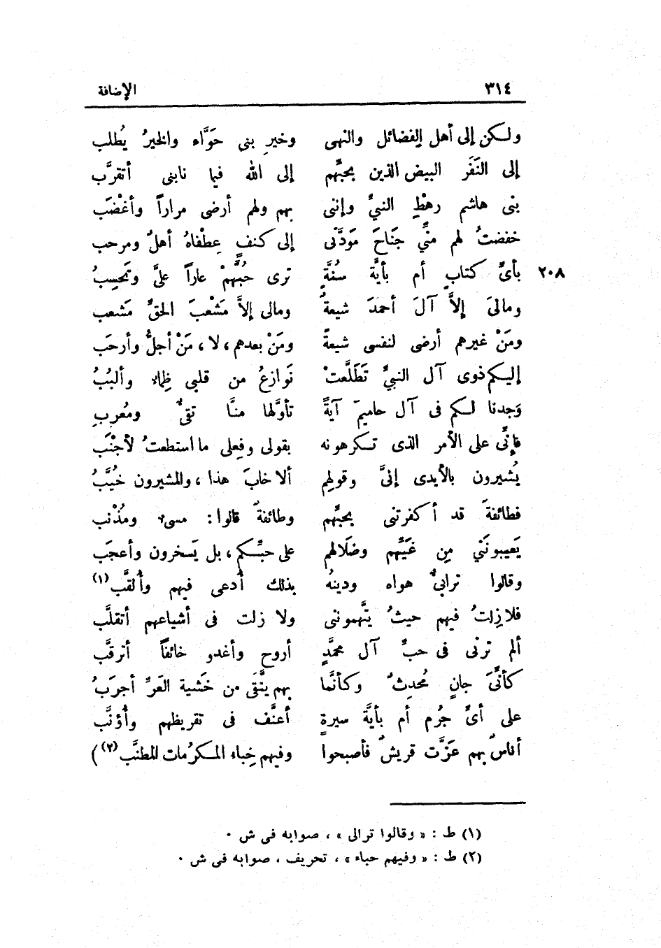 (إِلَى النّفر الْبيض الَّذين بحبّهم ... إِلَى الله فِيمَا نابني أتقرّب)