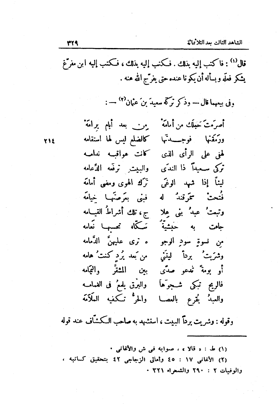 وَفِي بيعهمَا قَالَ وَذكر تَركه سعيد بن عُثْمَان: مجزوء الْكَامِل