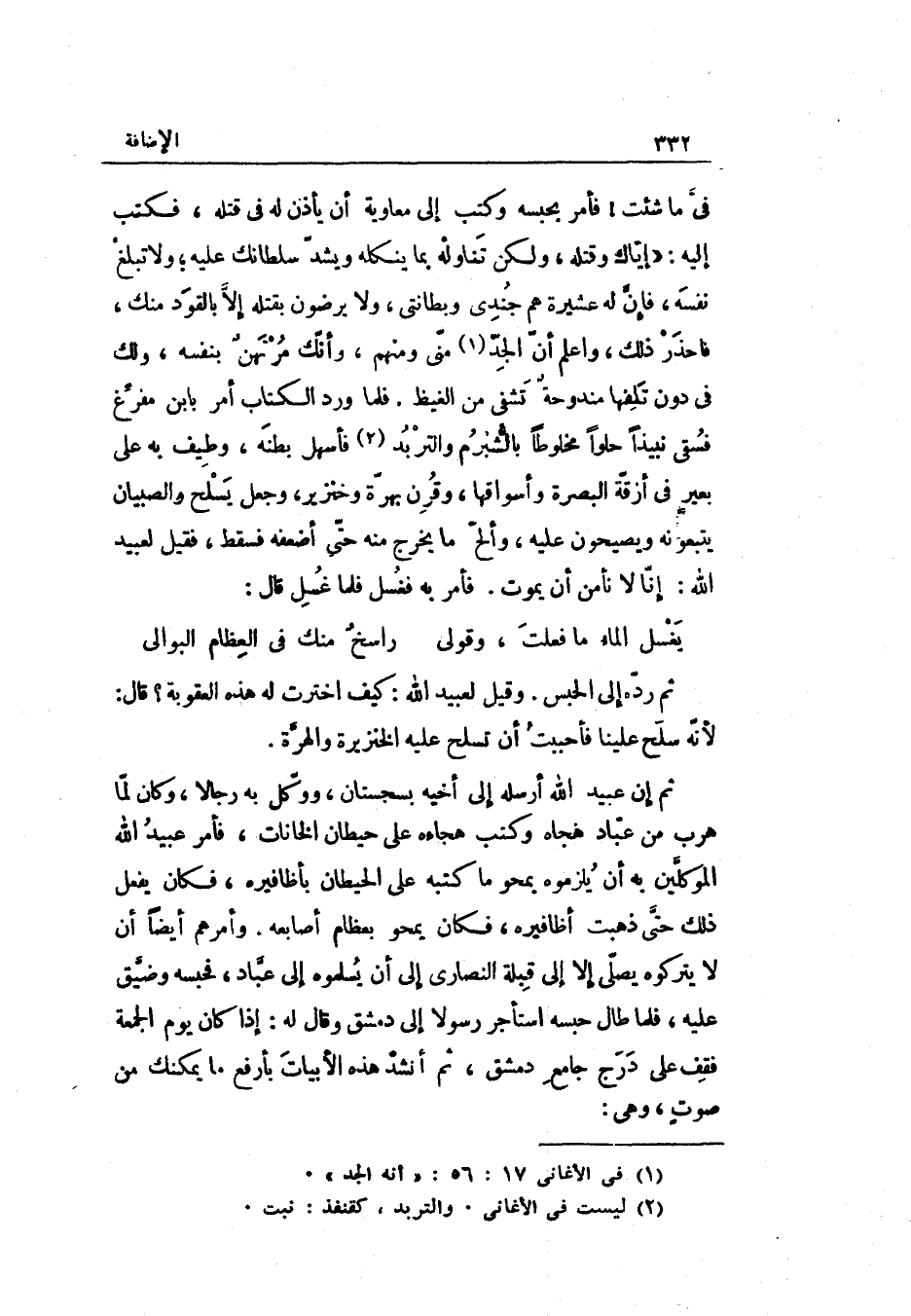 وَأمرهمْ أَيْضا أَن لَا يَتْرُكُوهُ يصليّ إلاّ إِلَى قبْلَة النّصارى إِلَى أَن يسلموه إِلَى عبّاد فحبسه وضيّق عَلَيْهِ فَلَمَّا طَال حَبسه اسْتَأْجر رَسُولا إِلَى دمشق وَقَالَ بِهِ: إِذا كَانَ يَوْم الْجُمُعَة فقف على درج جَامع دمشق ثمَّ أنْشد هَذِه الأبيات بأرفع مَا يمنك من صوتٍ وَهِي: