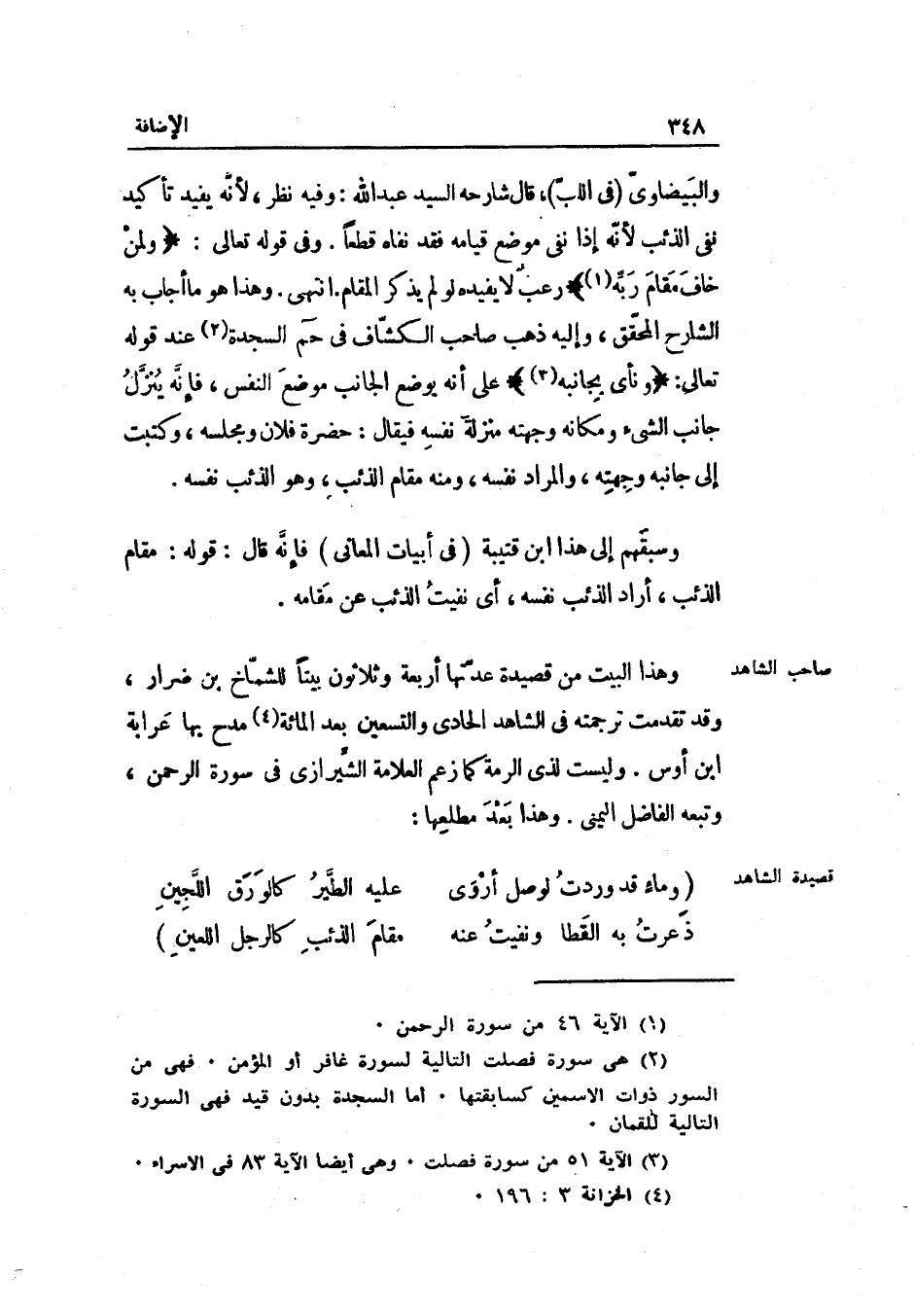 وَهَذَا هُوَ أجَاب بِهِ الشَّارِح المحقّق وَإِلَيْهِ ذهب صَاحب الكشّاف فِي حم السَّجْدَة عِنْد قَوْله تَعَالَى: ونأى بجانبه على أنّه يوضع الْجَانِب مَوضِع