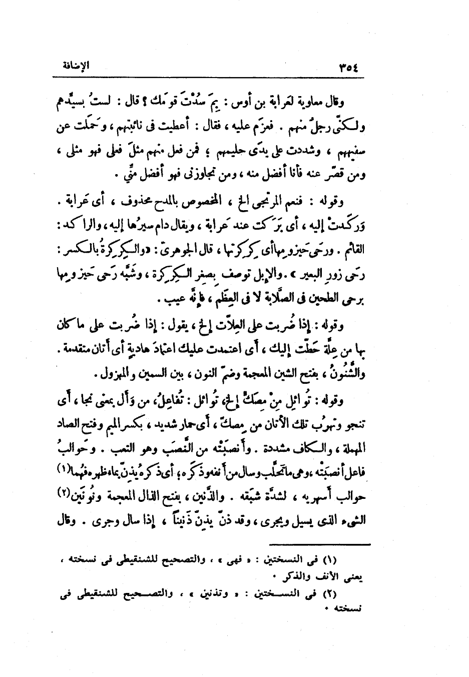 وَقَوله: إِذا ضربت على العلاّت الخ يَقُول: إِذا ضربت على مَا كَانَ بهَا من عِلّة حطت إِلَيْك أَي: اعتمدت عَلَيْك اعْتِمَاد هاديةٍ أَي: أتان مُتَقَدّمَة. والشّنون بِفَتْح الشين الْمُعْجَمَة وضمّ النُّون بَين السمين والمهزول.
