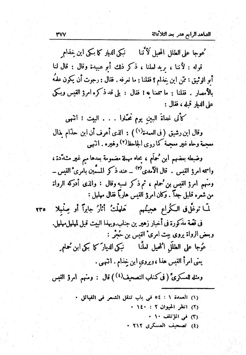 (عوجا على الطّلل الْمُحِيل لعلّنا ... نبكي الدّيار كَمَا بَكَى ابْن حمام)