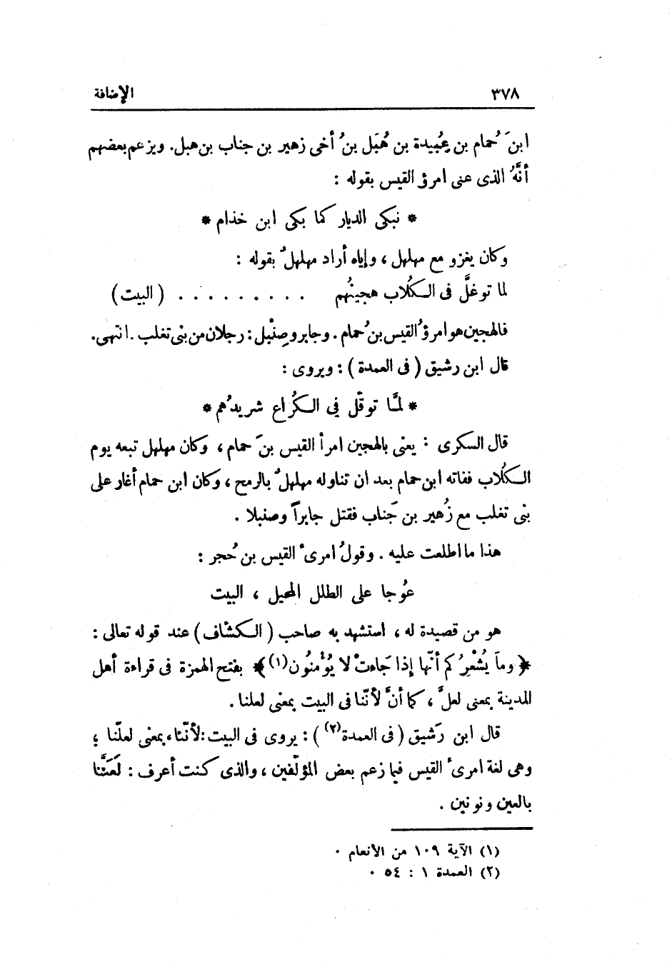 قَالَ ابْن رَشِيق فِي الهمدة: يرْوى فِي الْبَيْت لأنّنا بِمَعْنى لعلّنا وَهِي لُغَة امْرِئ الْقَيْس فِيمَا زعم بعض المؤلفين وَالَّذِي كنت أعرف: لعنّنا بِالْعينِ ونونين.