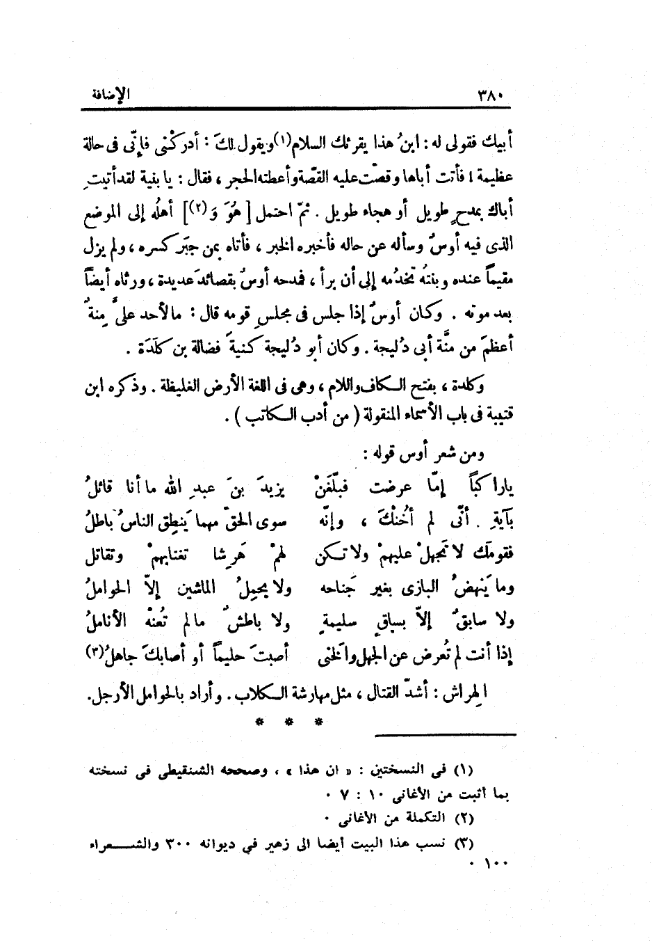 وَمن شعر أَوْس قَوْله: الطَّوِيل