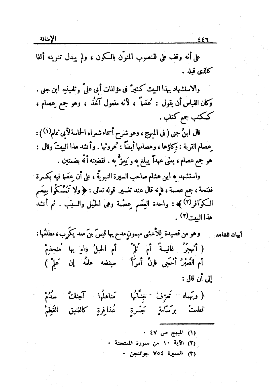 وَاسْتشْهدَ بِهِ ابْن هِشَام صَاحب السِّيرَة النَّبَوِيَّة على أَن عصماً فِيهِ بكسرة