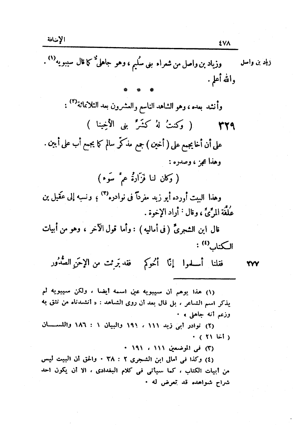 قَالَ ابْن الشجريّ فِي أَمَالِيهِ: وَأما قَول الآخر وَهُوَ من أَبْيَات الْكتاب: الوافر