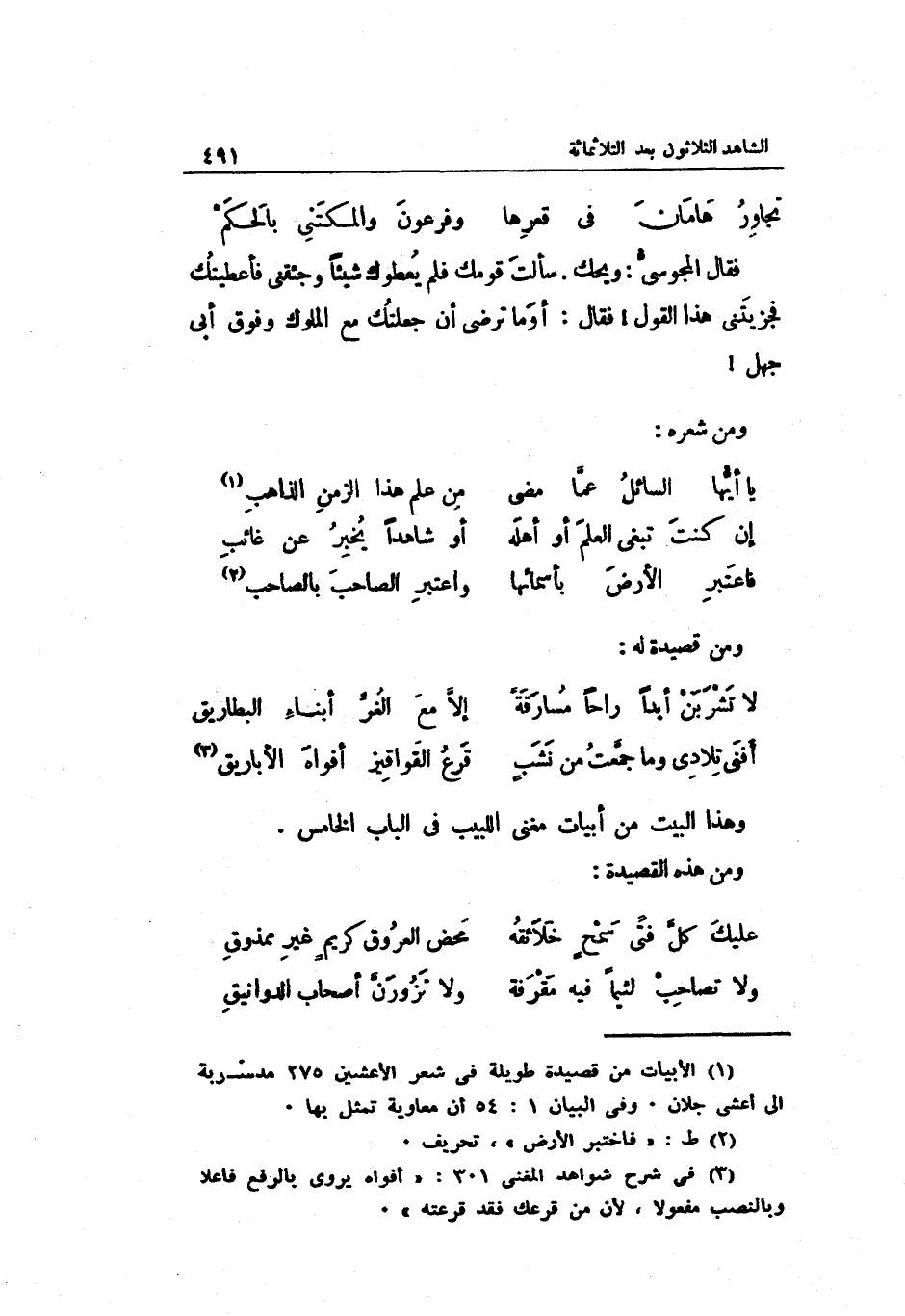 وَهَذَا الْبَيْت من أَبْيَات مُغنِي اللبيب فِي الْبَاب الْخَامِس.
