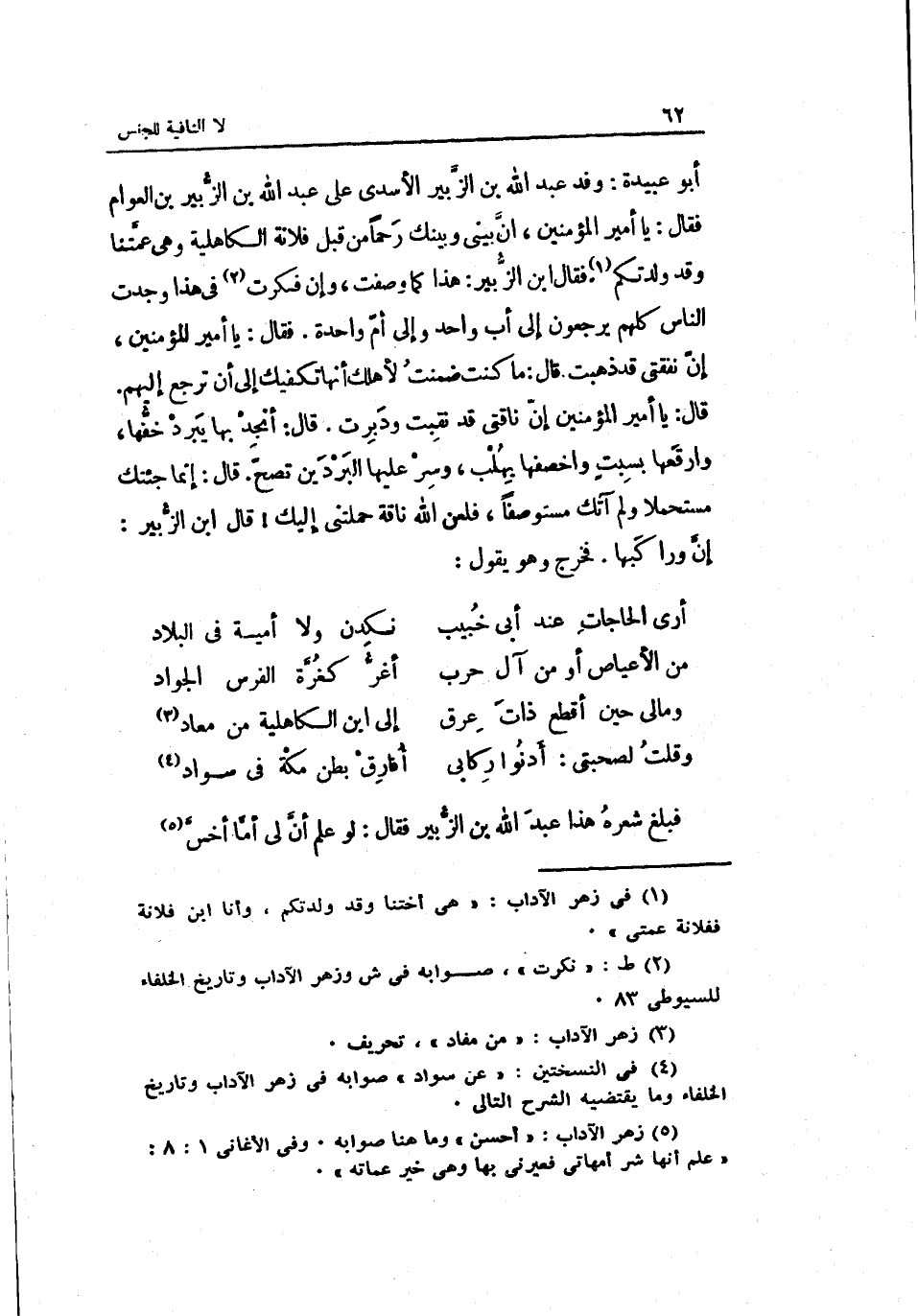 فَبلغ شعره هَذَا عبد الله بن الزّبير فَقَالَ: لَو أعلم أنّ لي أمّاً أخسّ