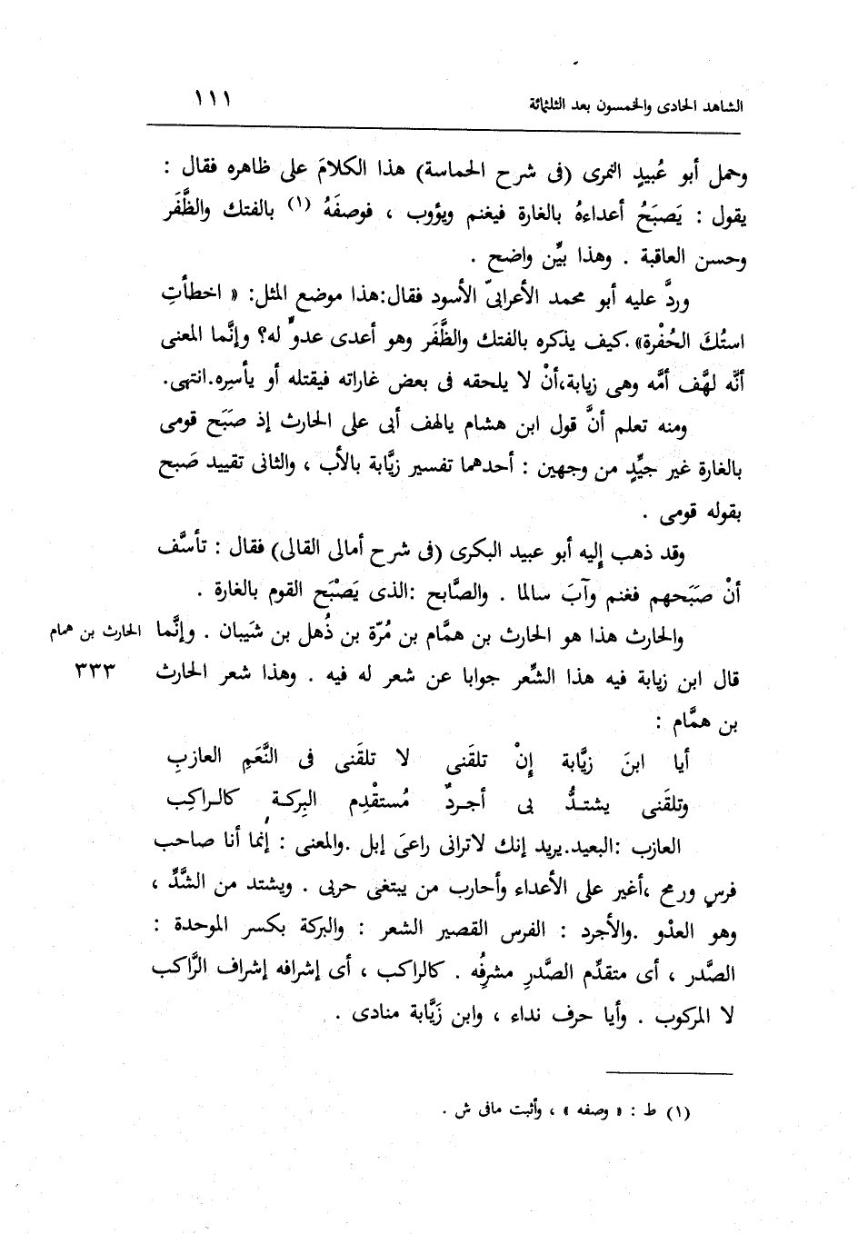 والْحَارث هَذَا هُوَ الْحَارِث بن همام بن مرّة بن ذهل بن شَيبَان. وَإِنَّمَا قَالَ ابْن زيابة فِيهِ هَذَا الشّعْر جَوَابا عَن شعر لَهُ فِيهِ. وَهَذَا شعر الْحَارِث بن همام: السَّرِيع)