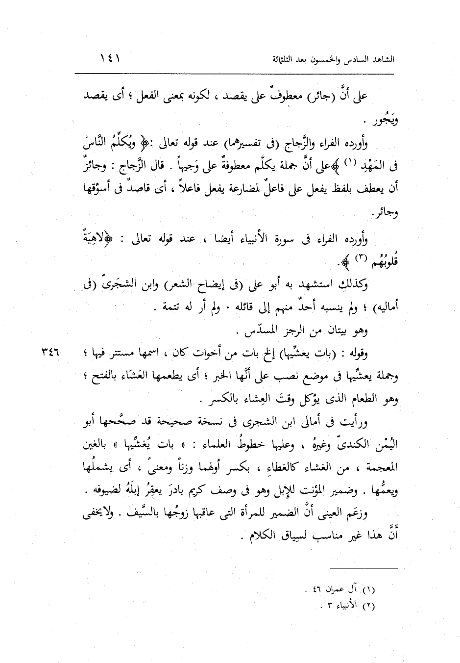 وَأوردهُ الْفراء فِي سُورَة الْأَنْبِيَاء أَيْضا عِنْد قَوْله تَعَالَى: لاهِيَةً قُلُوبُهُم.