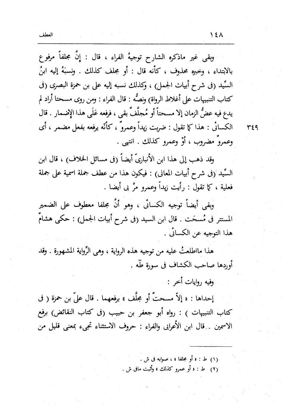 وَبَقِي أَيْضا تَوْجِيه الْكسَائي وَهُوَ أَن مجلفاً مَعْطُوف على الضَّمِير الْمُسْتَتر فِي مسحت. قَالَ ابْن السَّيِّد فِي شرح أَبْيَات الْجمل: حكى هِشَام هَذَا التَّوْجِيه عَن الْكسَائي.