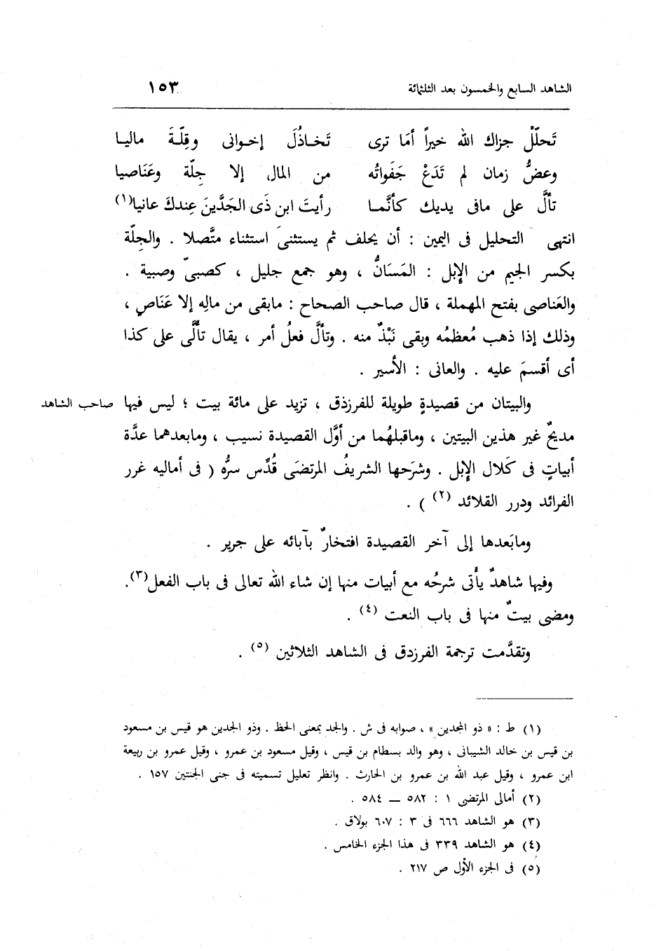 وفيهَا شَاهد يَأْتِي شَرحه مَعَ أَبْيَات مِنْهَا إِن شَاءَ الله تَعَالَى فِي بَاب الْفِعْل. وَمضى بَيت مِنْهَا فِي بَاب النَّعْت.