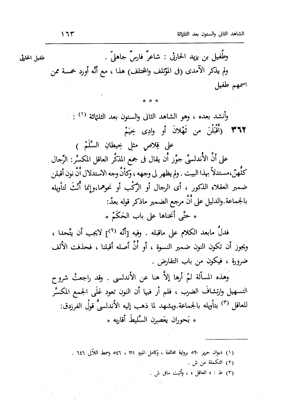 وَهَذِه الْمَسْأَلَة لم أرها إِلَّا هُنَا عَن الأندلسي. وَقد راجعت شُرُوح التسهيل وارتشاف الضَّرْب فَلم أر فِيهَا أَن النُّون تعود على الْجمع المكسر للعاقل بتأويله بِالْجَمَاعَة.