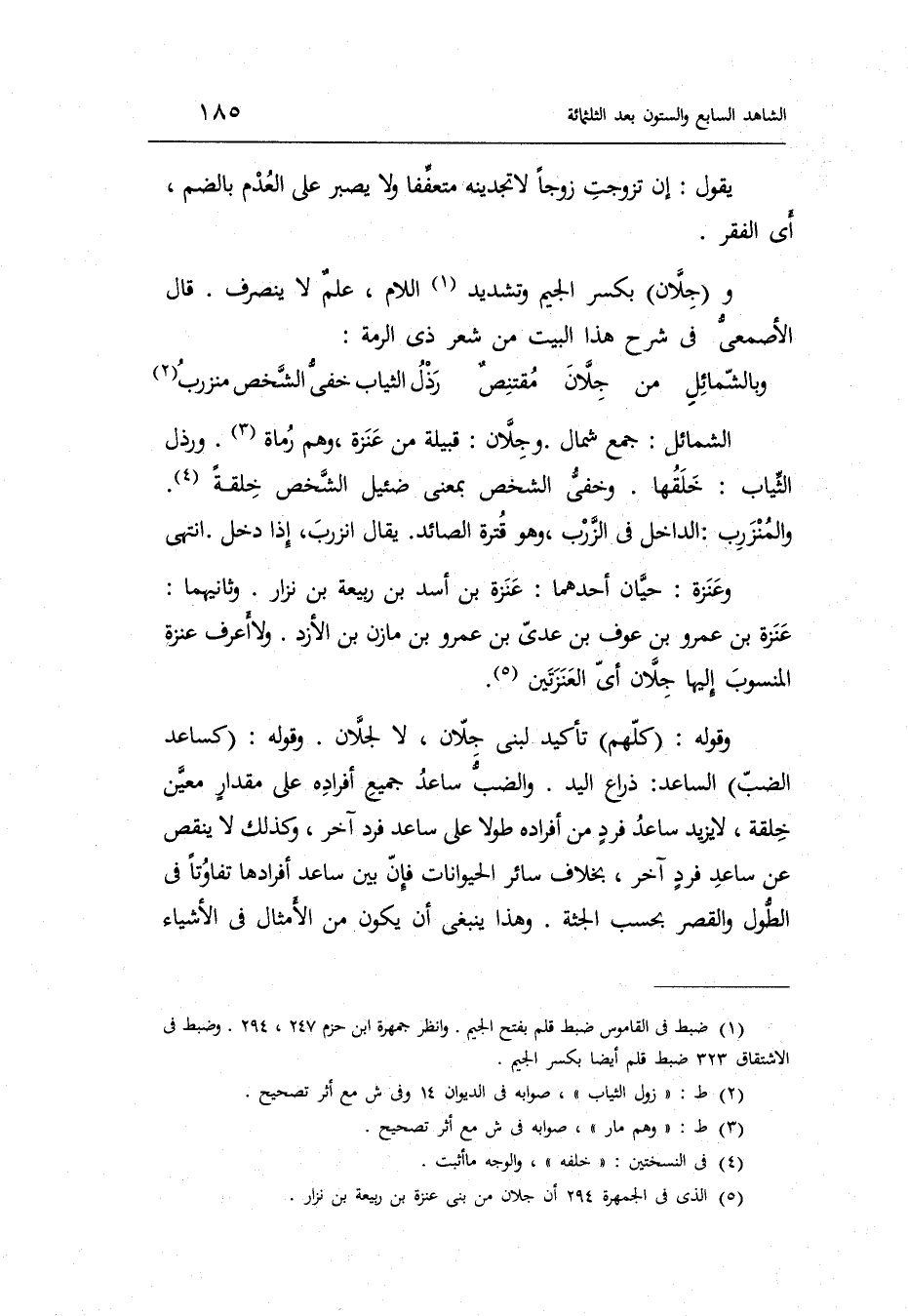 الشَّمَائِل: جمع شمال. وجلان: قَبيلَة من عنزة وهم رُمَاة. ورذل الثِّيَاب: خلقهَا. وخفي الشَّخْص بِمَعْنى ضئيل الشَّخْص خلقَة. والمنزرب: الدَّاخِل فِي الزرب وَهُوَ قترة الصَّائِد. يُقَال: انزرب إِذا دخل. انْتهى.
