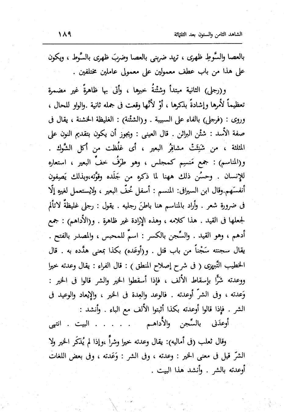 وَأنْشد: أوعدني بالسّجن والأداهم ... ... ... ... ... . الْبَيْت انْتهى