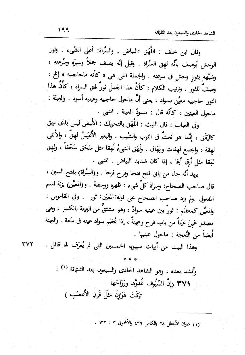 وَأنْشد بعده الشَّاهِد الْحَادِي وَالسَّبْعُونَ بعد الثلاثمائة الْكَامِل