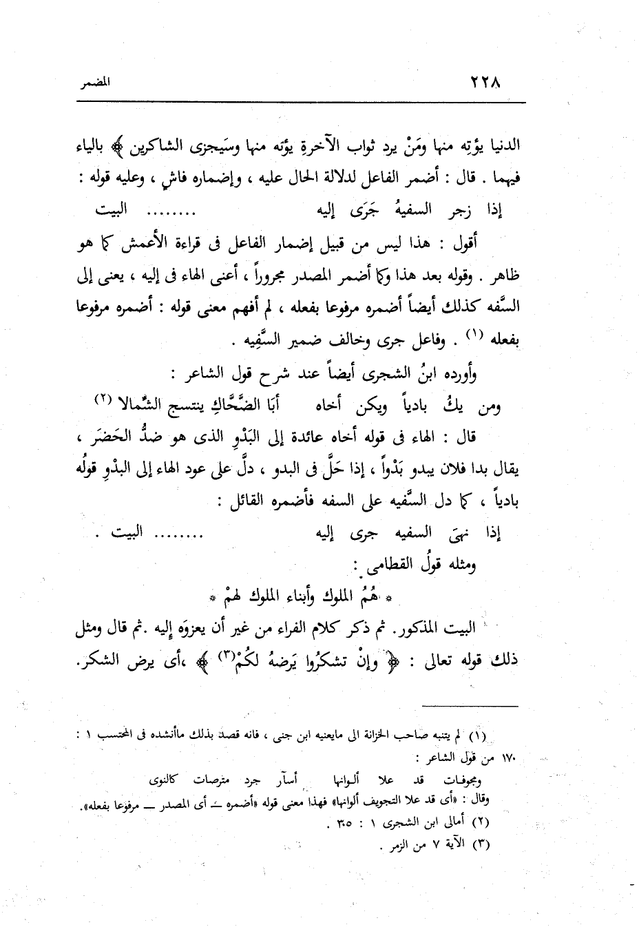 أَقُول: هَذَا لَيْسَ من قبيل إِضْمَار الْفَاعِل فِي قِرَاءَة الْأَعْمَش كَمَا هُوَ ظَاهر. وَقَوله بعد هَذَا وكما أضمر الْمصدر مجروراً أَعنِي الْهَاء فِي إِلَيْهِ يَعْنِي إِلَى السَّفه. كَذَلِك أَيْضا أضمره مَرْفُوعا بِفِعْلِهِ لم أفهم معنى قَوْله أضمره مَرْفُوعا بِفِعْلِهِ وفاعل جرى وَخَالف ضمير السَّفه.