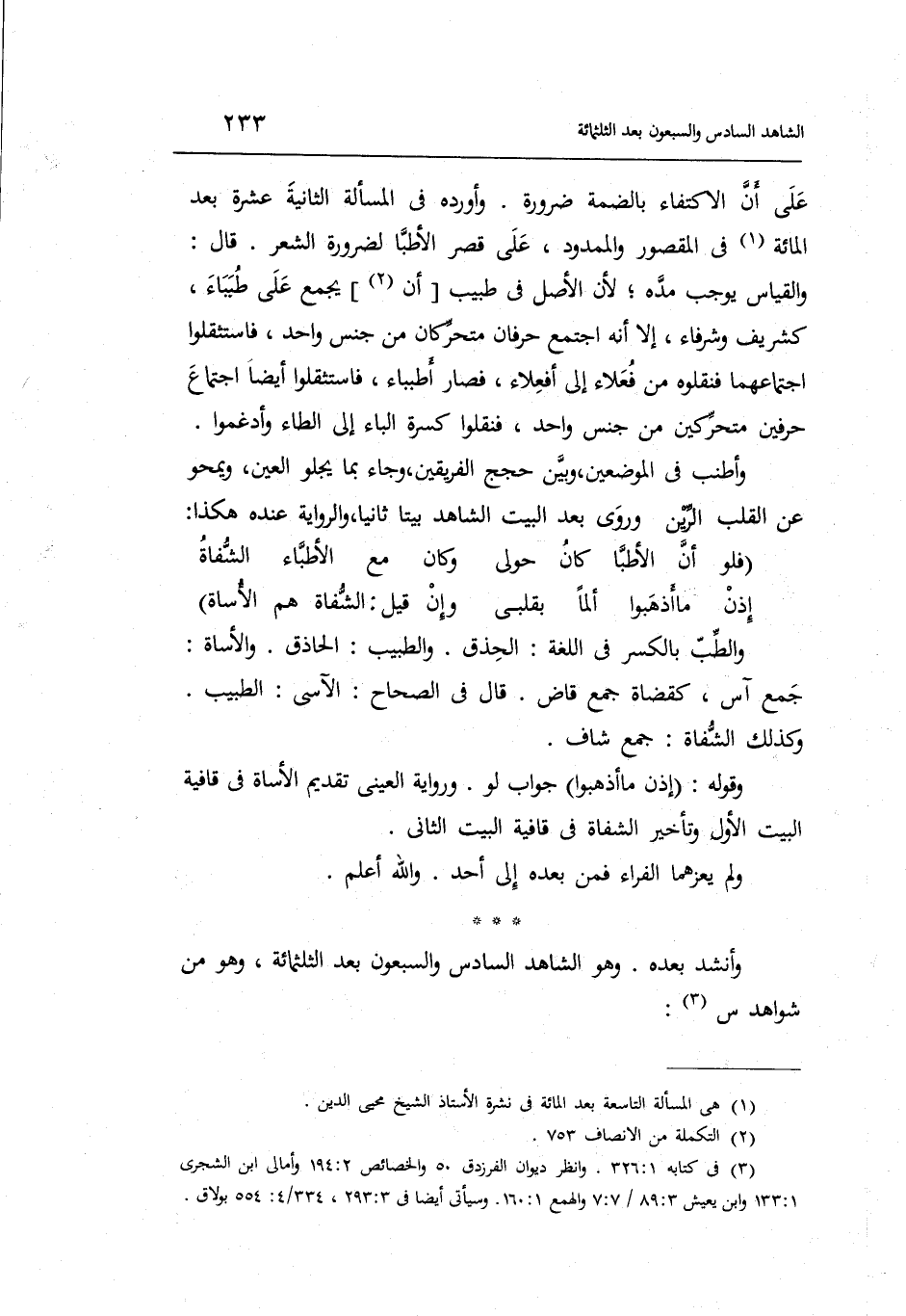 وَأنْشد بعده الشَّاهِد السَّادِس وَالسَّبْعُونَ بعد الثلاثمائة وَهُوَ من شَوَاهِد س: